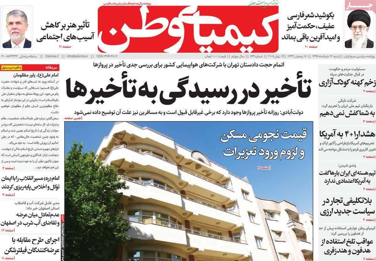 «آب و اولویت های اصفهان گم شد»و «نجات زاینده رود با جلوگیری از هدر رفت آب »از تیترهای صفحه نخست روزنامه های امروز اصفهان است که به عملکرد مسوولان ملی در تامین آب استان اصفهان انتقاد دارد.