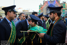 آیین تعویض پرچم گنبد حرم حضرت معصومه (س) - قم