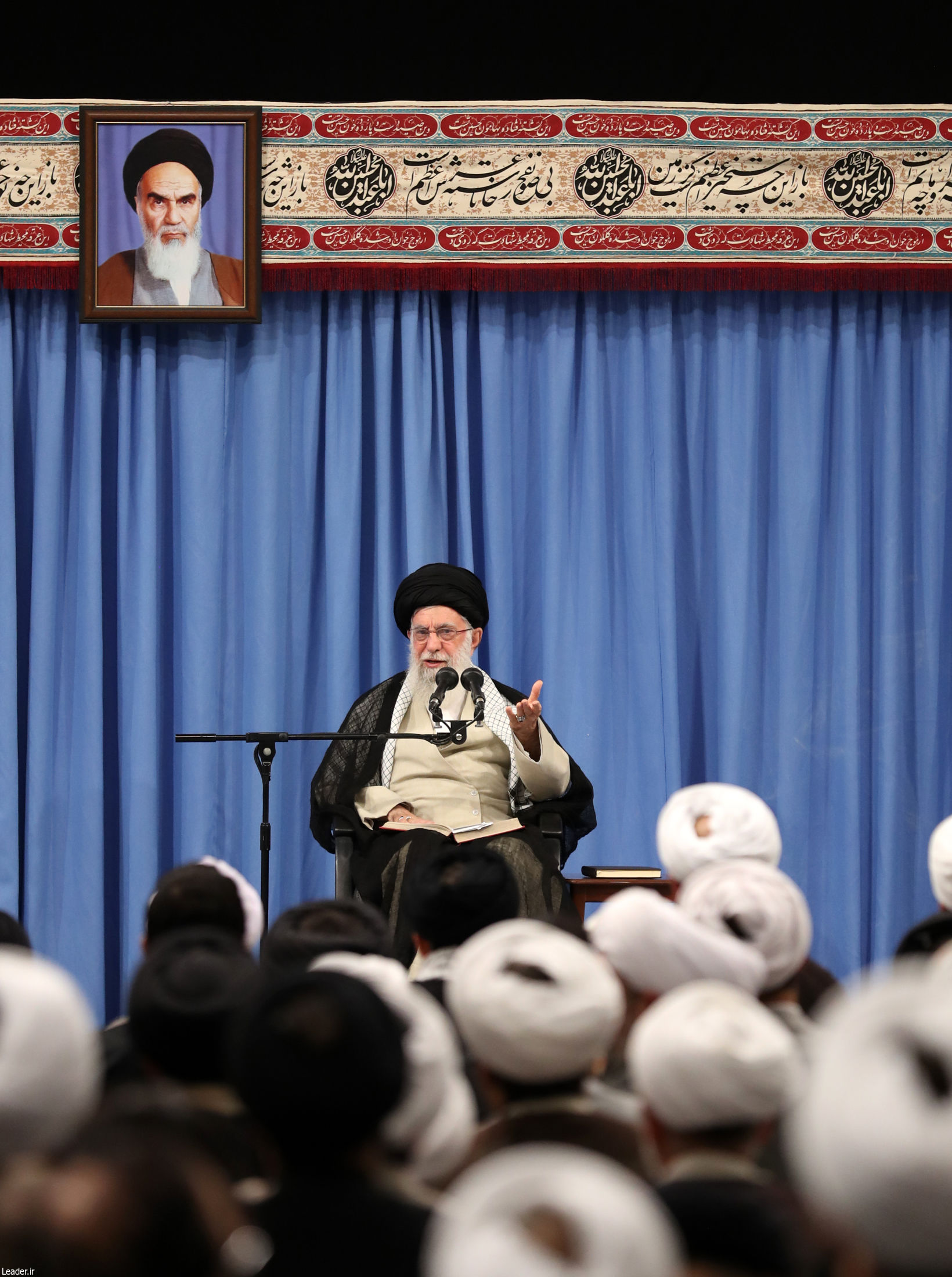 به گزارش خبرگزاری صداوسیما به نقل از پایگاه اطلاع رسانی دفتر مقام معظم رهبری، حضرت آیت الله خامنهای صبح امروز (سهشنبه) با اشاره به هوشیاری عمیق و تحسینبرانگیز مردم در مقابل توطئههای دشمنان در چهار دهه گذشته، تنها راه علاج مشکلات کشور را تکیه به مردم و جوانان و جدی گرفتن ظرفیتهای داخلی دانستند و با اشاره به طرح مجدد موضوع مذاکره از جانب آمریکاییها، هدف آنها از ترفند مذاکره را تحمیل خواستههای خود و اثبات تأثیرگذاری فشار حداکثری بر ایران خواندند و تأکید کردند: سیاست فشار حداکثری در مقابل ملت ایران پشیزی ارزش ندارد و همه مسئولان جمهوری اسلامی یکصدا معتقدند که با آمریکا در هیچ سطحی مذاکره نخواهد شد.