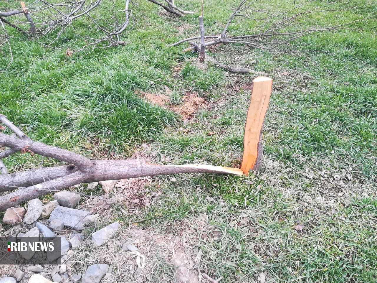 به گزارش خبرنگار ما درختان به فاصله  30 تا 40 سانتی متر از زمین ارّه  و شکسته شده است.