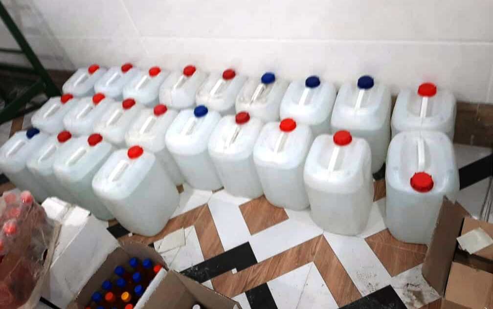 مرزبانان آستارا ۴۰۰ لیتر مواد ضدعفونی کننده و الکل احتکار شده را کشف کردند.