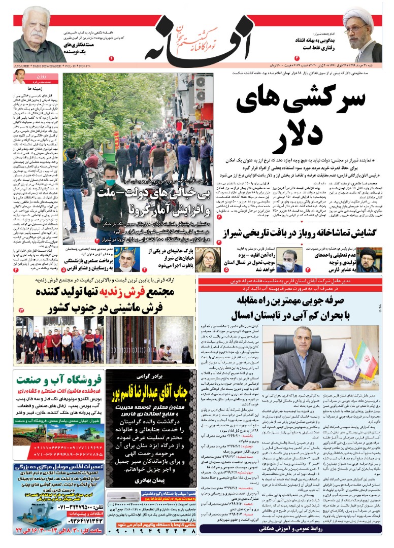 به گزارش خبرگزاری صدا و سیما، مرکز فارس، صفحات نخست روزنامه‌های امروز شنبه ۳۱ خرداد فارس را ببینید.