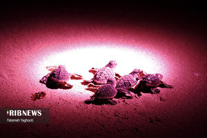 گروهی از بچه لاک پشت‌های پوزه عقابی در سواحل جزیره زیبای کیش سر از تخم بیرون آورده و راهی دریا شدند و زندگی جدیدشان را در آب‌های خلیج‌فارس آغاز کردند